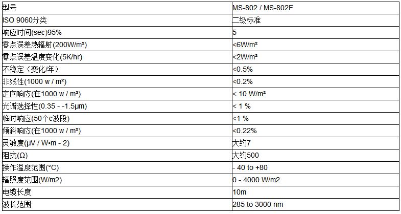 Rain Wise 光電傳感器ms-802和ms-802f參數(shù):
