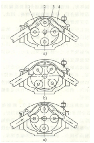 1-軟管? 2-滾輪? 3-轉(zhuǎn)子? 4-泵殼