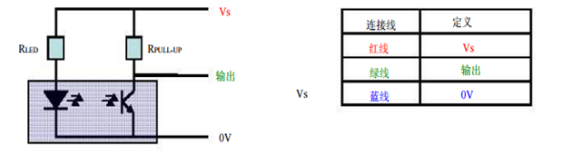 光電液位傳感器LLC200A3SH輸出電氣接線圖如下所示:針對(duì)不同的供電電壓Vs預(yù)選的RLED 和RPULL-UP值也不同,從而使輸出的開關(guān)信號(hào)的電壓也不同,用戶可根據(jù)實(shí)際應(yīng)用來選擇。