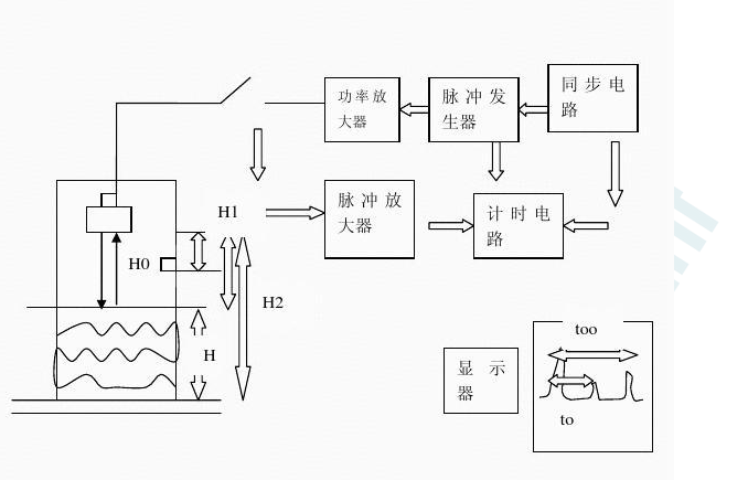 超聲波測(cè)量液位的基本原理是:由超聲探頭發(fā)出的超聲脈沖信號(hào),在氣體中傳播,遇到空氣與液體的界面后被反射,接收到回波信號(hào)后計(jì)算其超聲波往返的傳播時(shí)間,即可換算出距離或液位高度。超聲波測(cè)量方法有很多其它方法不可比擬的優(yōu)點(diǎn):(1)無(wú)任何機(jī)械傳動(dòng)部件,也不接觸被測(cè)液體,屬于非接觸式測(cè)量,不怕電磁干擾,不怕酸堿等強(qiáng)腐蝕性液體等,因此性能穩(wěn)定、可靠性高、壽命長(zhǎng);(2)其響應(yīng)時(shí)間短可以方便的實(shí)現(xiàn)無(wú)滯后的實(shí)時(shí)測(cè)量。
