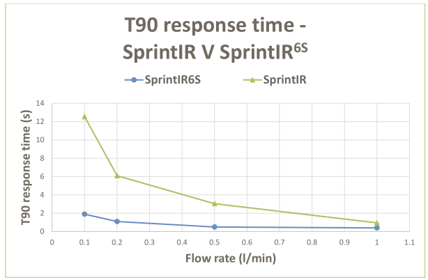 利用氣體對紅外線的吸收原理檢測。常用的是CO2傳感器。該法測定準確、響應迅速,當氣流量 >0.2L/min 時,CO2濃度響應值T90可達到1s。所以特別適用于肺功能檢測儀實時測定CO2濃度。