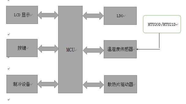 圖1:HTU20/21D在空調(diào)中的應(yīng)用框圖