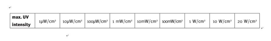 一般來說GaN系列材質的傳感器能夠承受的大輻射強度大約為100mw/cm2,建議傳感器在沒有安裝衰減器時,紫外線的輻射強度不要超過50mw/cm2,高強度的輻射強度會大大降低紫外線的壽命,但是SiC材質的傳感器能很好的承受高強度輻射。