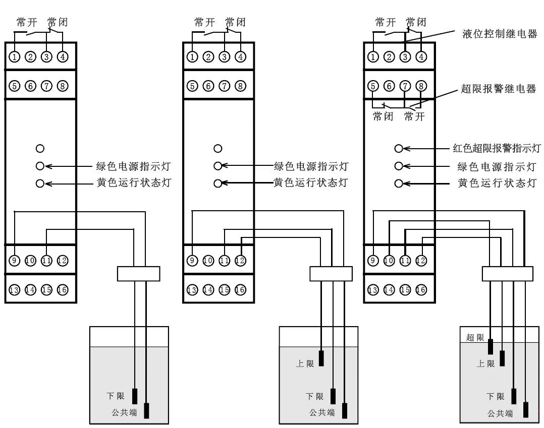電極式液位開關(guān)是利用液體的導(dǎo)電性來監(jiān)測液位的高低,解釋接觸到棒極,便會(huì)導(dǎo)電從而輸出報(bào)警信號(hào)。該液位開關(guān)可多點(diǎn)控制,控制位置由客戶需求而定,具有突破保護(hù)功能,可有效防止突波干擾,不過電極式液位開關(guān)僅適用于導(dǎo)電液體,且液體不能有揮發(fā)性