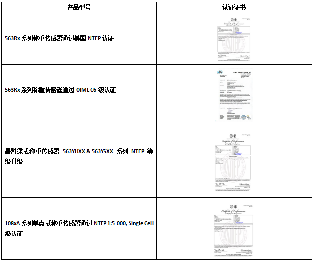 563Rx系列稱重傳感器通過美國NTEP認(rèn)證