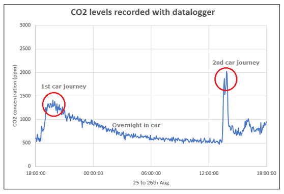 David Moodie博士補充說:“我們的實際數(shù)據(jù)記錄器測量結果顯示了二氧化碳水平如何在一個封閉的空間內迅速積聚,并且是在一個相對較短的時間內。 這兩次旅行的結果均超過世界衛(wèi)生組織的指導標準,即二氧化碳水平應低于1000 ppm。“