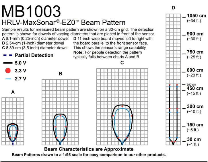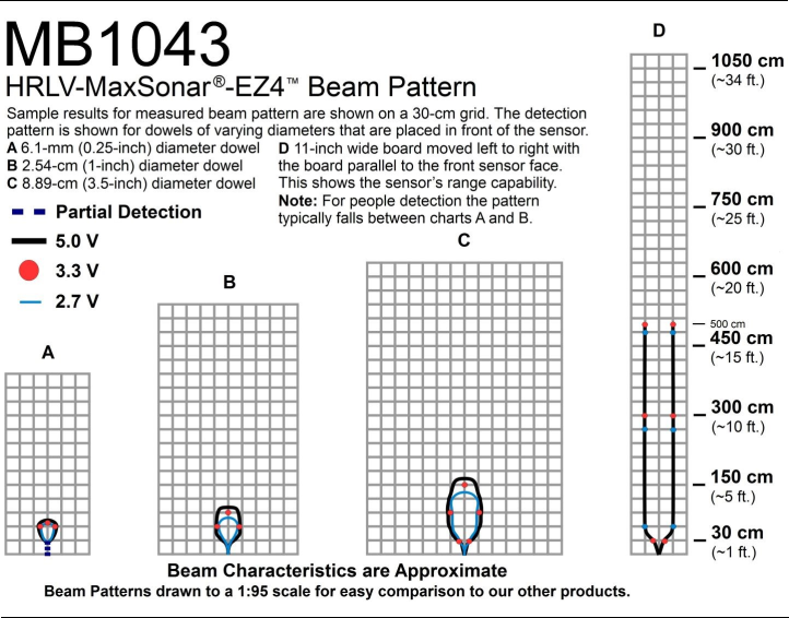 超聲波避障傳感器MB1043在HRLV-MaxSonar-EZ系列中的波束角選擇