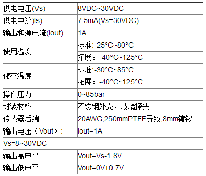 光電式液位傳感器/光電液位開關(guān)LLC200D3SH(工業(yè)級)電氣特性: