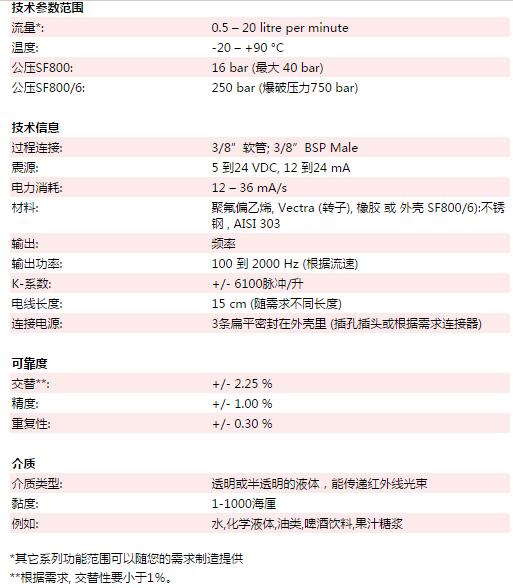 專利SF800是性價(jià)比優(yōu)良的通用型流量計(jì). 它的使用范圍非常廣泛,而且可以測試各種各樣的液體, 液體的流速為0.5 到20 L/min,溫度在 -20 到+90 ℃ ,16 bar (至多40 bar).