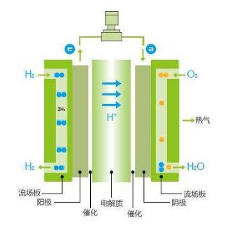 燃料氣體和氧化氣體分別從燃料電池的陽極和陰極引入。燃料氣體在陽極上發(fā)射電子,電子通過外部電路傳導(dǎo)到陰極并與氧化氣體結(jié)合產(chǎn)生離子。在電場的作用下,離子通過電解質(zhì)遷移到陽極,與燃料氣體反應(yīng),形成環(huán)路,并產(chǎn)生電流。同時,燃料電池由于其自身的電化學(xué)反應(yīng)和電池的內(nèi)阻而產(chǎn)生一定量的熱量。
