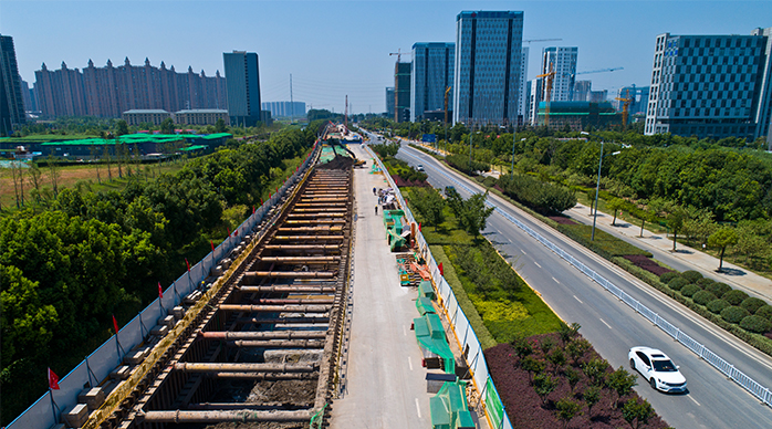 除大明路外,機(jī)場四路也已開工建設(shè)綜合管廊。南部新城集團(tuán)公司總經(jīng)理助理殷鳳軍說,南部新城與河西新城、江北新區(qū)的大范圍開闊地不同,內(nèi)部均為小街區(qū)和高密度路網(wǎng),且地下規(guī)劃建設(shè)5條地鐵線、10座地鐵站,這都給管廊建設(shè)帶來了很大限制。為此,他們因地制宜,不一味求大,而是根據(jù)道路條件建設(shè)適合新城的管廊。緯七路、機(jī)場路、承天大道等主干道建設(shè)干線管廊,為三艙到四艙,高度3米左右;機(jī)場四路等次干道建設(shè)支線管廊,一般為雙艙;其余穿街巷道路建設(shè)纜線管廊,均為單艙。南部新城的大部分管廊,都是單艙纜線管廊,10千伏供電加各類通信纜線全部入艙。